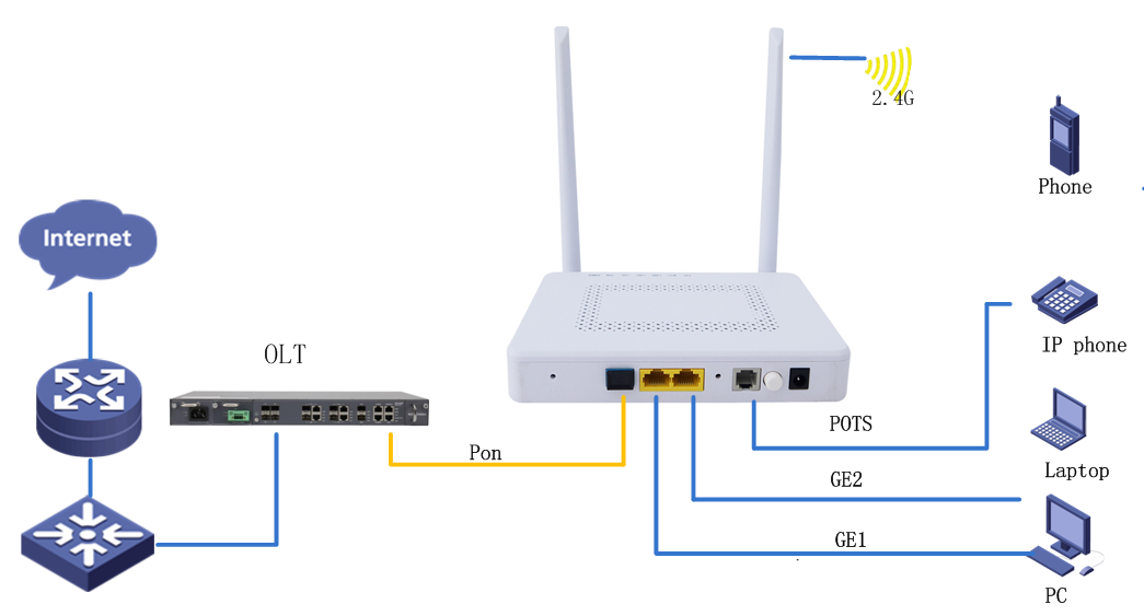 GDONU300-212 XPON HGU 1GE+1FE+WIFI(2.4G) +1POTS